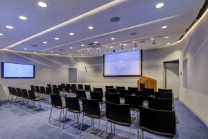 The Laurie Landeau Room is ideal for board meetings and high-level strategic discussions, whilst The Wolfson Conference Suite suits larger training sessions and seminars. Integrated AV and layouts that can shift from theatre-style to roundtables with ease.